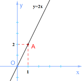 Với `x=1` thì `y=2`, ta được điểm `A(1;2)` thuộc đồ thị của hàm số `y=2x`.