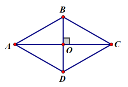 VD: Cho hình thoi `ABCD` có `O` là giao điểm của hai đường chéo.