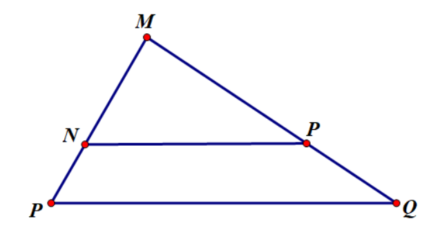 VD: Cho tam giác bên, hãy chứng minh: `NR //// PQ`
