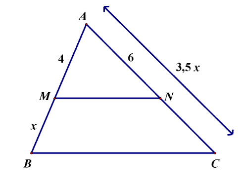 `(AM)/(AB)=(AN)/(AC)=>4/(4+x)=6/(3,5x)`