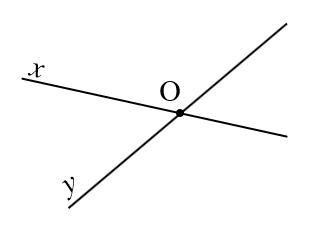 - Ví dụ : Hai đường thẳng `x` và `y` cắt nhau tại giao điểm `O`.