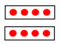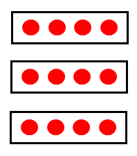 Mỗi tấm thẻ có `4` chấm tròn. Lần lượt lấy ra `1,2,3` tấm thẻ rồi nêu các phép nhân tương ứng:
