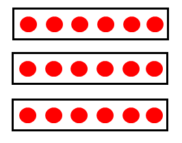 Mỗi tấm thẻ có `6` chấm tròn. Lần lượt lấy ra `1,2,3` tấm thẻ rồi nêu các phép nhân tương ứng:
