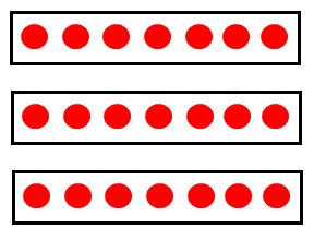 Mỗi tấm thẻ có `7` chấm tròn. Lần lượt lấy ra `1,2,3` tấm thẻ rồi nêu các phép nhân tương ứng: