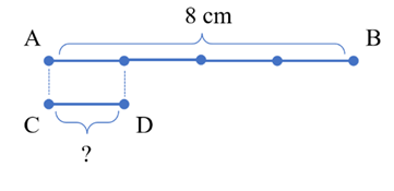 Đoạn thẳng `AB` dài `8` cm. Độ dài đoạn thẳng `AB` giảm đi `4` lần thì được độ dài đoạn thẳng `CD`. Hỏi đoạn thẳng `CD` dài bao nhiêu xăng-ti-mét?