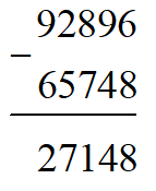 Vậy `92` `896` `-` `65` `748` `=` `27` `148`