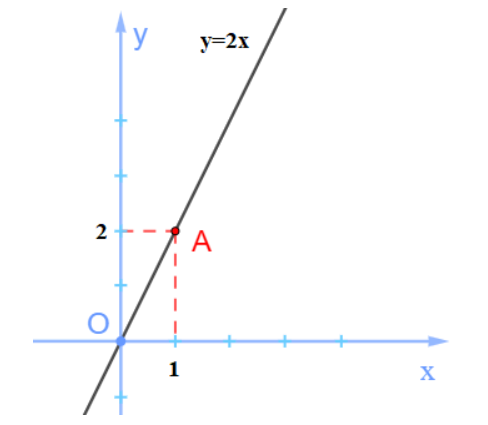 Với `x = 1` thì `y = 2`, ta được điểm `A(1;2)` thuộc đồ thị của hàm số `y = 2x`