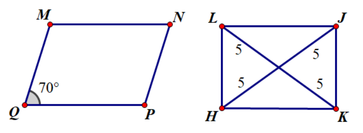 - Hình bình hành `MNPQ` không là hình chữ nhật vì `hatQ` không vuông.