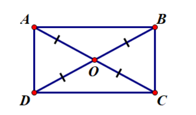 Theo giả thiết, `O` là trung điểm của cả `AC` và `BD` nên ta có `ABCD` là hình bình hành. Hơn nữa, `AC = BD` nên theo định lí `2`, hình bình hành `ABCD` là hình chữ nhật.
