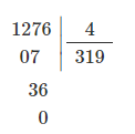 Hạ `6` được `36`; `36` chia `4` được `9`, viết `9`.