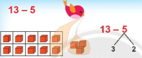 + Thực hiện tính nhẩm `13` trừ đi `1` số ( trừ qua `10` trong phạm vi `20`)