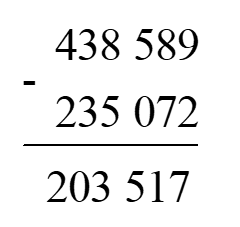 Vậy `438` `589 - 235` `072 = 203` `517`