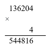 Vậy: `136` `204 xx 4 = 544` `816`.