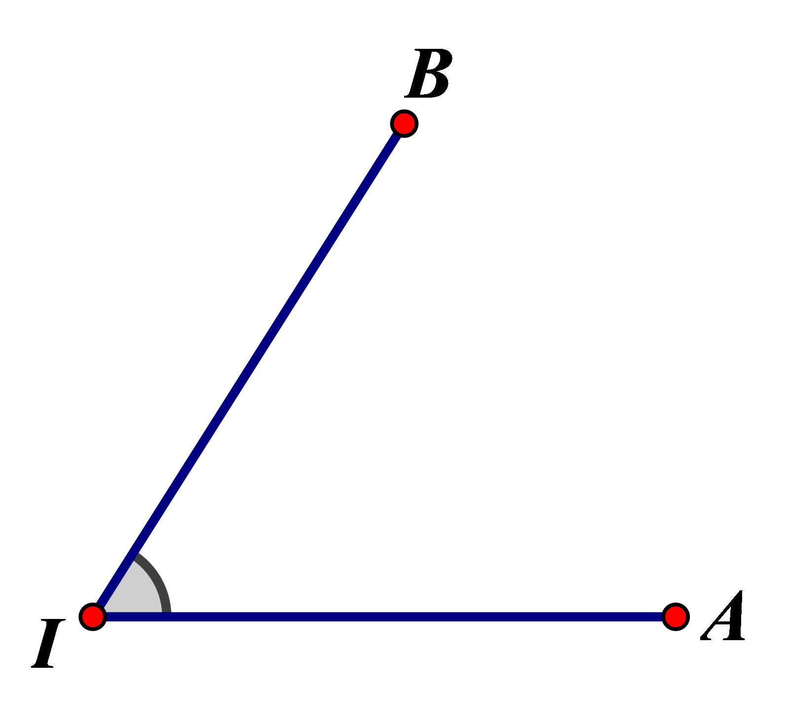 +) Dùng thước đo góc để xác định số đo góc đỉnh `I`, cạnh `IA, IB`