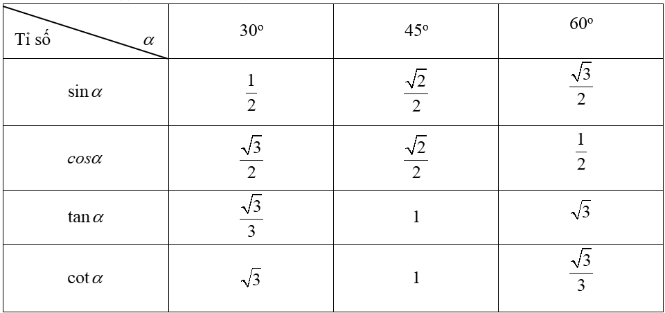 3. Bảng tỉ số lượng giác của một số góc đặc biệt
