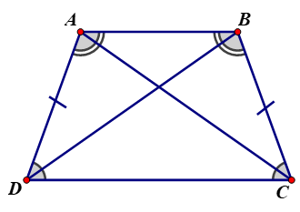 `ABCD` là hình thang cân(đáy `AB,CD`) `<=> {(AB////CD,,,,),(hat C=hat D;hat A =hatB,,,,):}`