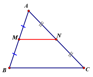 Kết luận: `MN` là đường trung bình tam giác `ABC`