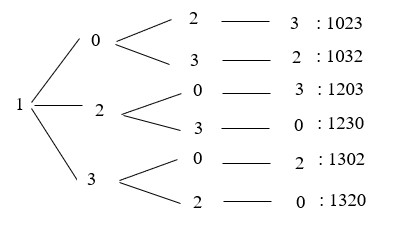 Nhìn sơ đồ trên, ta thấy: Từ bốn chữ số đã cho, ta viết được `6` số có chữ số hàng nghìn là `1` thỏa mãn điều kiện của đề bài.