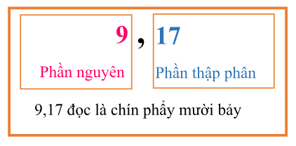 - Những chữ số ở bên trái dấu phẩy thuộc về phần nguyên, những chữ số ở bên phải dấu phẩy thuộc về phần thập phân.