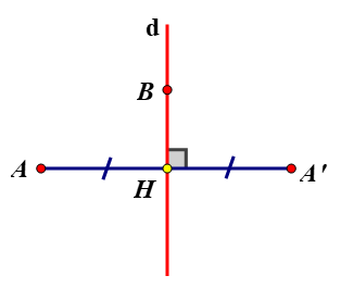 Trên hình vẽ, ta có hai điểm `A` và `A’` đối xứng với nhau qua đường thẳng `d`