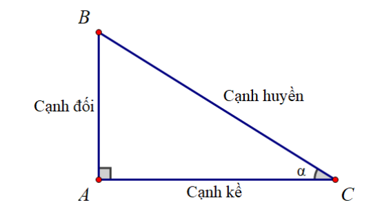 Cho góc nhọn `alpha`. Xét tam giác `ABC` vuông tại `A` có `hat C = alpha`.