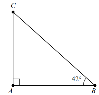 Ta có chiều cao của cột đèn là `AC, AB = 7,5 m` và `hat B = 42^@`
