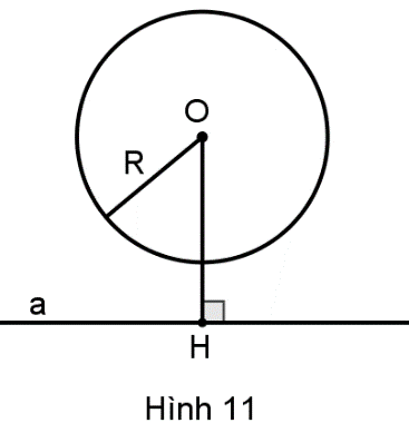 - Đường thẳng `a` và đường tròn `(O; R)` không giao nhau khi khoảng cách từ tâm `O` đến đường thẳng `a` lớn hơn `R` và ngược lại (Hình `11`).