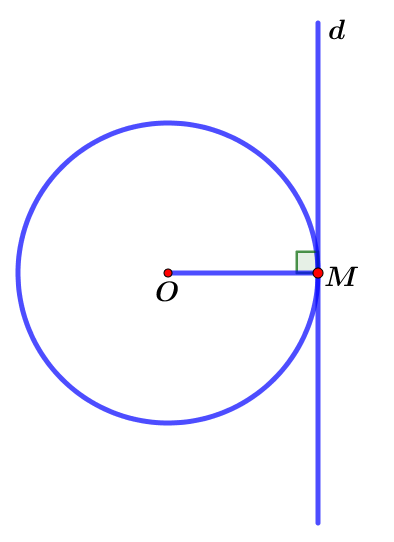 `d` là tiếp tuyến của đường tròn `(O)` tại tiếp điểm `M`
