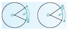 Phép quay thuận chiều `alpha^@` `(0^@ < alpha^@ < 360^@)` tâm `O` giữ nguyên điểm `O`, biến điểm `A` khác điểm `O` thành điểm `B` thuộc đường tròn `(O, OA)` sao cho tia `OA` quay thuận chiều kim đồng hồ đến tia `OB` thì điểm `A` tạo nên cung `AB` có số đo `alpha^@`