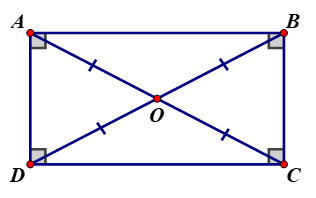 Trong hình chữ nhật, hai đường chéo bằng nhau và cắt nhau tại trung điểm của mỗi đường
