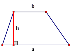 Diện tích hình thang bằng nửa tổng hai đáy với chiều cao: `S=1/2(a+b).h`