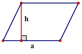 Diện tích hình bình hành bằng tích của một cạnh với chiều cao tương ứng với cạnh đó: `S=a.h`