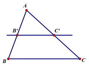 Giả thiết: `△ABC;B'C'////BC(B’ in AB; C’ in AC)`