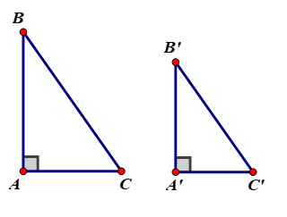 Giả thiết: `△ABC;△A'B'C';hat A=hat(A')=90^o;(AB)/(A'B')=(AC)/(A'C')`