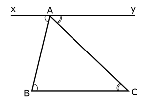 `xy //// BC => hat B = hat (BAx); hat C = hat (CAy)` (Các cặp góc so le trong)