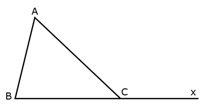Khi đó góc `ACx` được gọi là góc ngoài tại `C` của tam giác `ABC`.