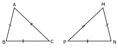 Xét `triangle ABC` và `triangle MNP` có: