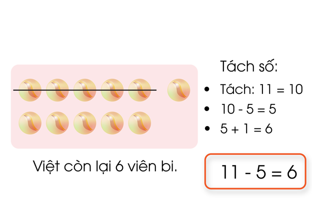 Ví dụ: Hoa có `11` viên kẹo. Sau khi cho em `6` viên thì Hoa còn lại bao nhiêu viên kẹo?