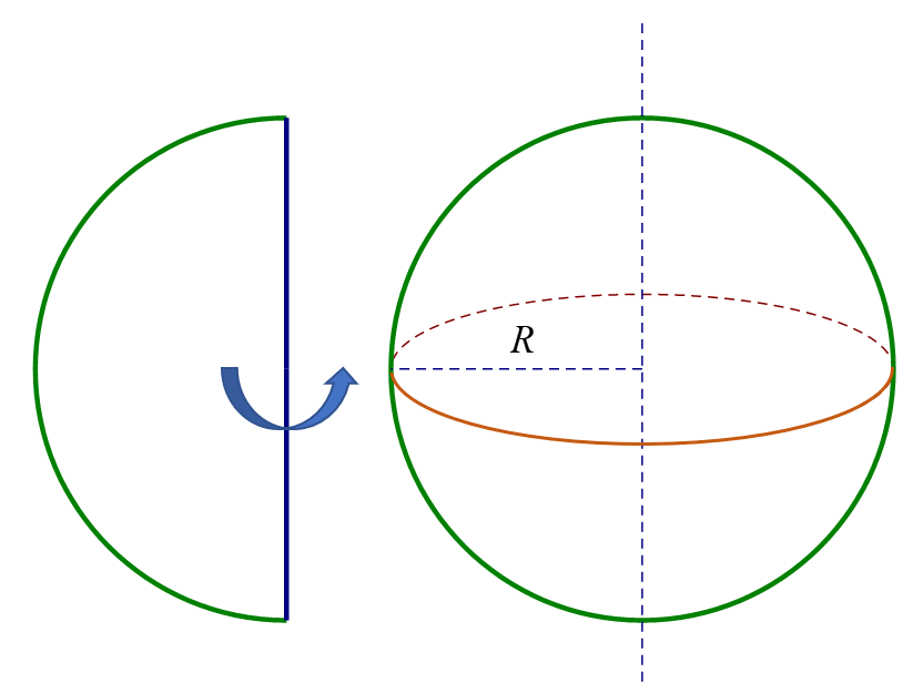 +) Nửa đường tròn trong phép quay nói trên tạo thành một mặt cầu