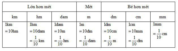 Bài 1: Ôn tập về bảng đơn vị đo độ dài