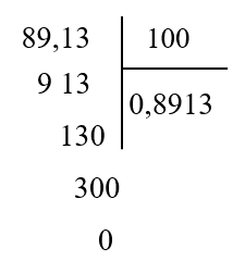 Nhận xét: Nếu chuyển dấu phẩy của số `89`,`13` sang trái hai chữ số ta cũng được `0`,`8913`