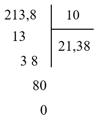 Nhận xét: Nếu chuyển dấu phẩy của số `213`,`8` sang trái một chữ số ta cũng được `21`,`38`