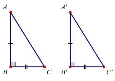 + Nếu hai cạnh góc vuông của tam giác vuông này lần lượt bằng hai cạnh góc vuông của tam giác vuông kia thì hai tam giác vuông đó bằng nhau