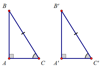 + Nếu cạnh huyền và một góc nhọn của tam giác vuông này bằng cạnh huyền và một góc nhọn của tam giác vuông kia thì hai tam giác đó bằng nhau
