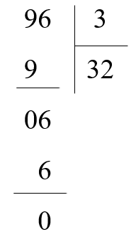 Vậy `96 : 3 = 32`