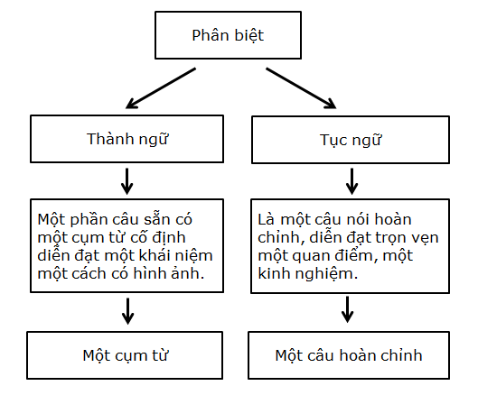 - Thành ngữ gồm những cụm từ mà được sử dụng để chỉ một ý cố định, thường không tạo thành một câu có ngữ pháp hoàn chỉnh nên không thể thay thế hay sửa đổi về ngôn ngữ.