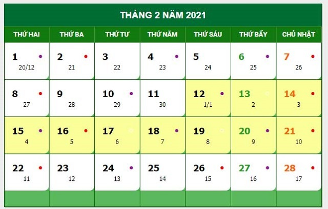 Tìm những ngày là chủ nhật trong tờ lịch sau?