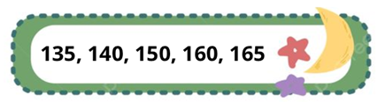 Viết `1` dãy số gồm `5` số biết rằng đây là một dãy số tăng dần cách nhau `5` đơn vị, bắt đầu từ `135.`
