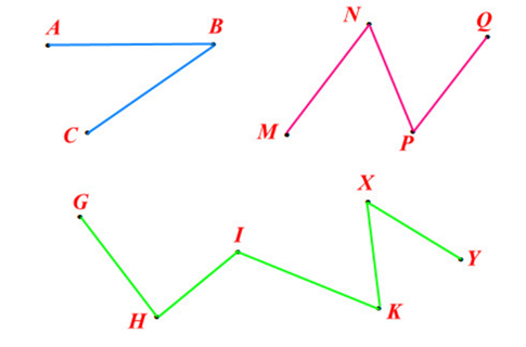 | Đường gấp khúc `ABC` gồm `3` đoạn thẳng | |