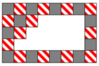 Một hình chữ nhật được tạo ra bởi 2 loại gạch: xám và sọc. Một số viên gạch bị mất đi (giống như hình). Hỏi có bao nhiêu viên gạch màu xám đã bị mất đi?